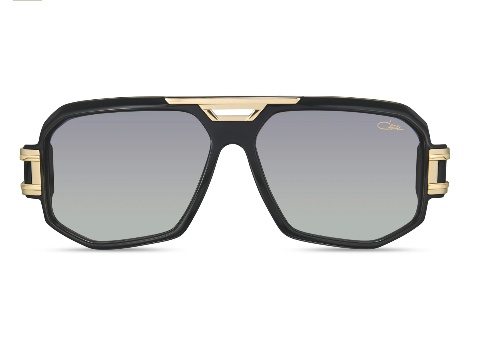 The Cazal 675/001 is an iconic piece from the Cazal Legends collection, featuring a full-rim square silhouette made of high-quality acetate in a black-and-gold colorway. According to official specs, this model is size 60/14 with grey-gradient lenses.